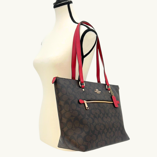 コーチ ギャラリー トートバッグ レディース / GALLERY TOTE IN SIGNATURE CANVAS / ブラウン レッド シグネチャーキャンバス