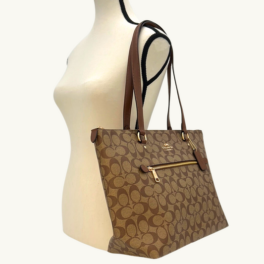コーチ ギャラリー トートバッグ レディース / GALLERY TOTE IN SIGNATURE CANVAS / カーキ サドル シグネチャーキャンバス
