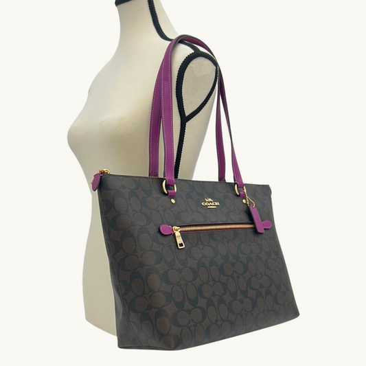 コーチ ギャラリー トートバッグ レディース / GALLERY TOTE IN SIGNATURE CANVAS / ブラウン ダークマゼンタ シグネチャーキャンバス