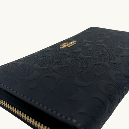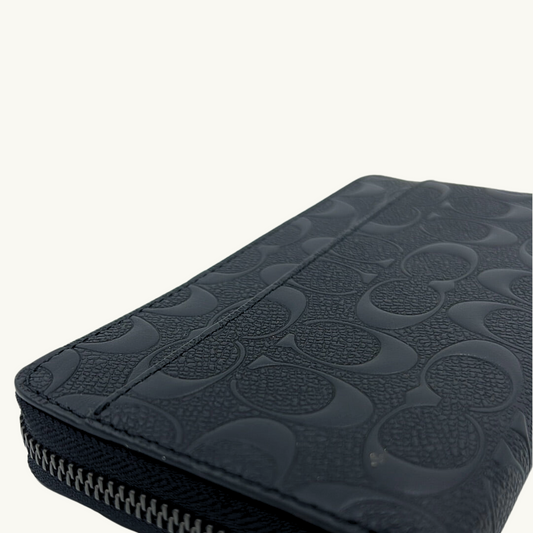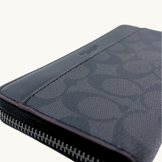 コーチ 長財布 (箱付き) / LONG ZIP AROUND WALLET / ブラック シグネチャークロスグレインレザー